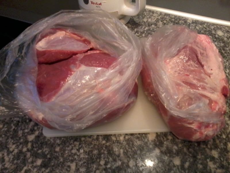 придобитото . по-малкото е свинското, а по-голямото е телешкото