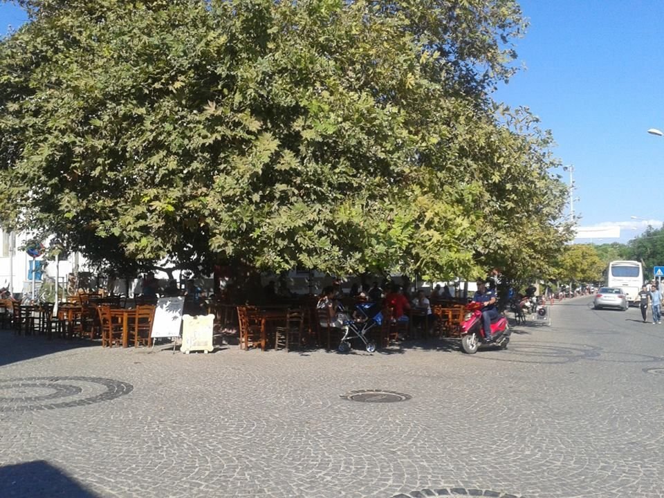 Да... натрупали са куфарите... сигурно чакат ферибота. Под големия чинар... Много красиво дърво. Направо се влюбих в него. Simple Smile