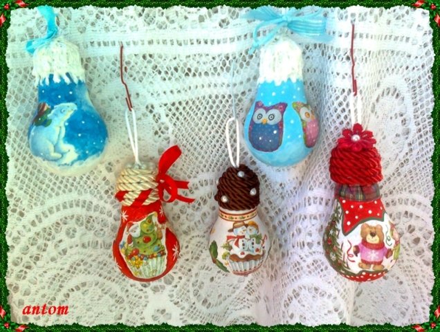 идея ви давам  Grinning  - някой от декупажистките   bouquet , мислил ли е за декупаж в/у крушки...и с връв като коледна играчка за елха..