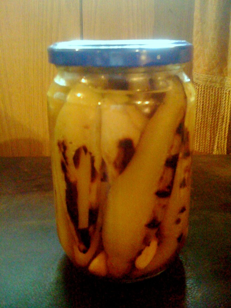 МАРИНАТА:1каф.чаша мед,1каф.чаша захар,1каф.чаша сол,1каф.чаша олио,0.500гр.оцет,0.600гр.вода,бахар,даф.лист- след като заври сместа,се заливат зеленчуците и след 2-3 дни е готова за консумация. Прибавя се и 1 глава чесън –белени скилидки.