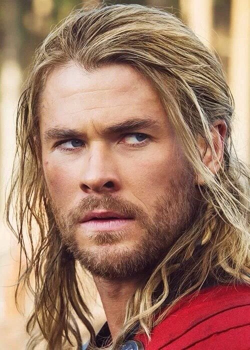 Бейби-фейс, дълга тъмно руса коса, присвити сини очи.