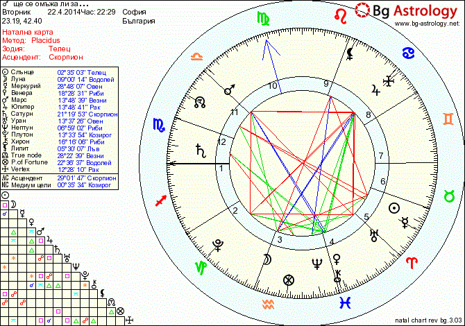 абсолютно не - много съм куца в тези неща. Реших да чета за хорарна астрология и да пробвам да си отговоря на въпрос едва днес. Така, че и сама мможеш да прецениш, че грам нищо не разбирам. Реших, че въпроса е с отговор "не" защото четох, че квадратурите и опозиите са нещо като лоши аспекти. Все пак моля за отговор. Аз нямам такъв, имам само предположения