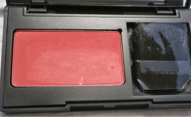и добавям руж на Инглот (#43) заедно с кутийката. Всъщност може и без нея. Ще спомена, че при тези палитри няма нужда да се вади с магнит, защото има дупчица в която може да се пъхне нещо остро и пълнителят излиза много лесно.