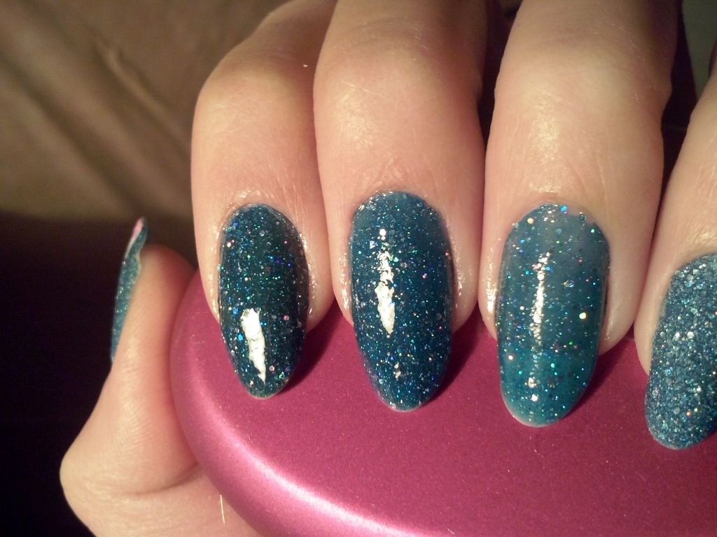 Реших да сложа и топ-лак в крайна сметка, тъй като напоследък усещам, че пясъците ми харесват една идея повече с 2-3 слоя Poshe - блясъкът и дълбочината се подсилват многократно от топ-лака, а повърхността им става гладка като стъкло. Ето го резултата,  Flutter: