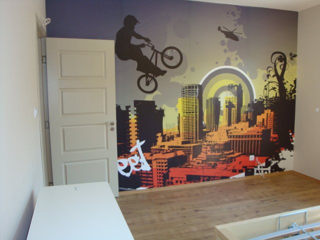 И понеже остана от зеленото Mr. Green, та боядисахме една от стените на Бобо в зелено, другото в някакво бяло-бежово, а на противоположната стена сложих фототапет, много качествен за моя радост.