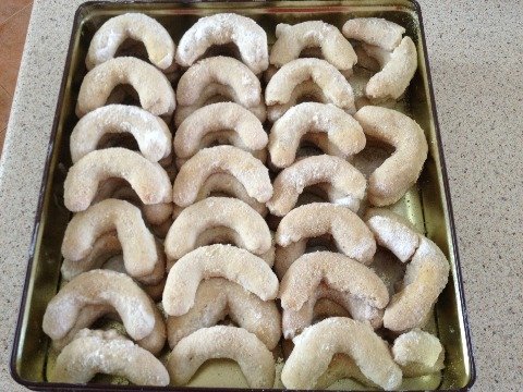 През уикенда отчетох рекорд - пекох меденки (на Джули), линцери (Наталина) и ванилени кравайчета с тесто, което отлежаваше в хладилника от предния уикенд. Та да докладвам - нищо му няма, дори при по-дълъг престой, пак си станаха същите чудесни вкусотии. Grinning За тази вечер съм забъркала две неща, които ще правя за първи път и не знам как ще са на вкус - едни анасонови луни и шоколадови линцери с аромат на ром. И двете рецепти имам от една италианка от Мерано (това е мноого близо до Австрия и влиянието се усеща). Пак от нея имам рецептата и за едни много приятни лимонови бефанини с ром, които също мисля тази година да направя. Надявам се и трите да се получат, че не съм ги правила досега. Grinning