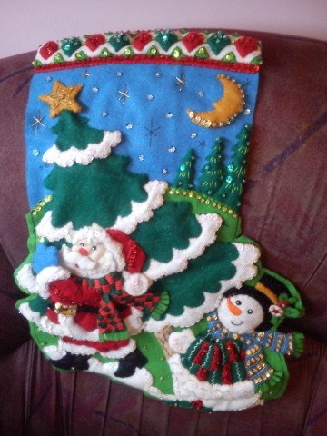 За другарчето ми в коледната игра - първоначалният вариант - ушито и неоформено.Схемата е на една рускиня, чийто работи страшно харесвам.