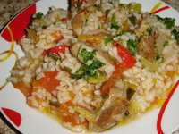 От мен една млечна баничка,чушки на фурна с пресен чесън,свинско с ориз,кекс с ябълки и стафиди и печени ябълки с мед и орехи.