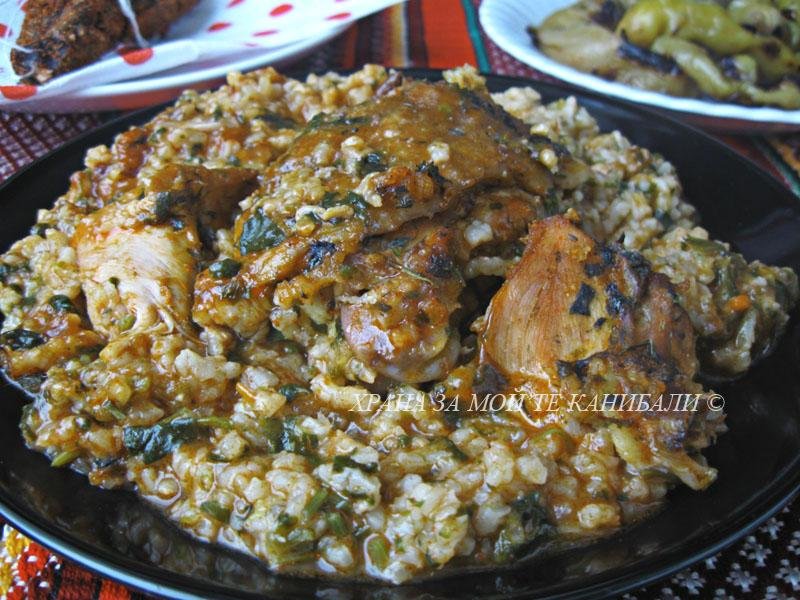 и спанак-пилешко-оризова яхния с домашно пиле  Laughing