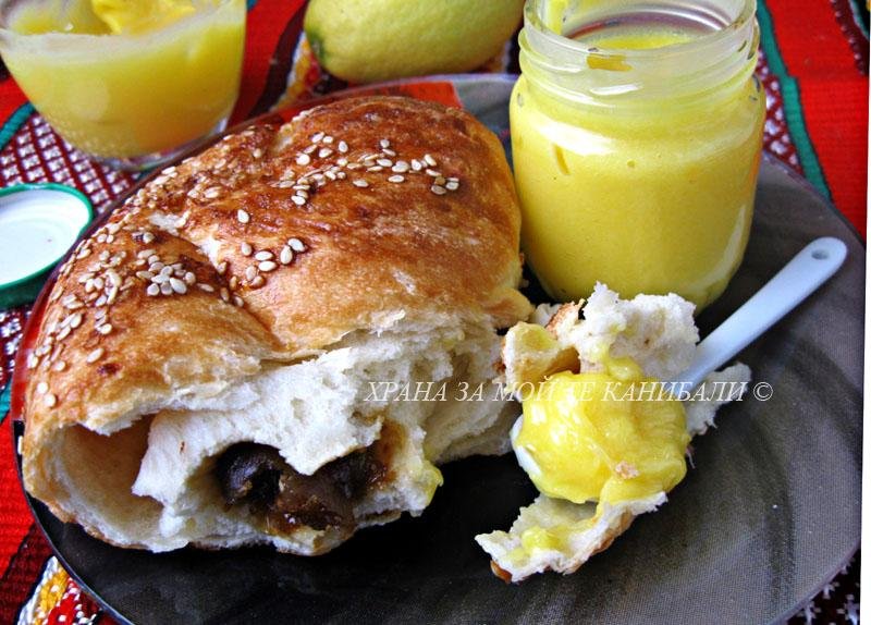 Лимонено сладко у нас (кифлата е домашна, но не мое производство и въпреки, че беше със смокини, си я намазах със сладкото  Mr. Green )