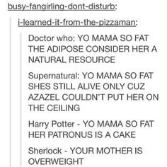 Okay, yes, sometimes the love for Wincest or Destiel can be overwhelming and terrifying, and sometimes I worry that if someone were to say the wrong thing at the wrong time, all of a sudden there'd be a giant internet-pocalypse and non-Supernatural fans would be completely wiped out and anyone who survived would  be forced to live in a world where "the Padalecki" was the only approved a hairstyle and trench coats were be mandatory uniform requirements. But I love Supernatural fans. I might not partake in their fan fiction, or attend their conventions, but I admire their dedication to their craft.