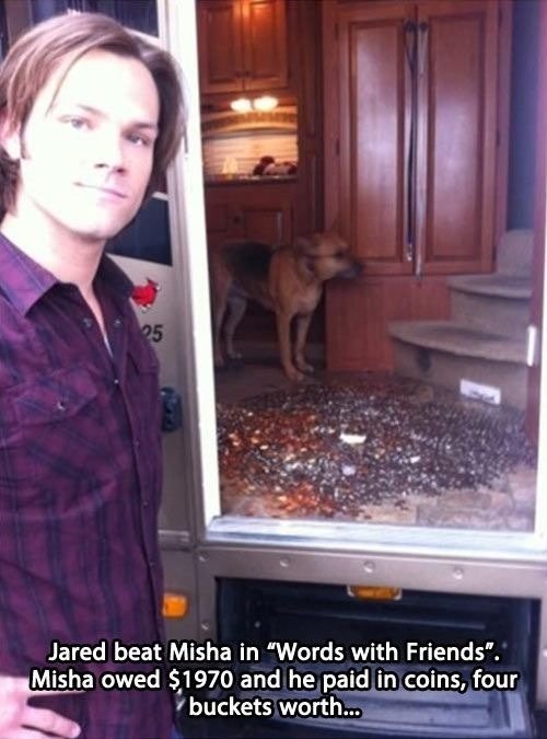 Jared about Misha's coins pranks (Asylum 6 2011):