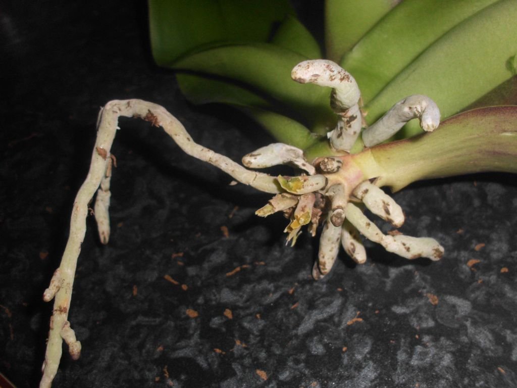 Момичета, чета ви, но не се включвам много, че имам само 3 орхидеи. Но вчера на служебния вход бяха изнесли цяла количка с орхидеи, почти прецъфтели, с поизсъхнали корени, съжалих че ги хвърлят и си взех 3, а днес още една уж да използвам корите да позапълня другите саксийки. Извадих ги и четирите от саксиите, изрязах изсъхналите корени, доста и повечето бяха в средата и ги сложих пак в саксийките с корите. Но тази дето бях взела да хвърлям и да използвам корите имаше пораснали малки коренчета, та оставих и нея. Но по по-старите корени имаше едни кафяви петна. Някой ако знае болест ли е това и могали да я посъживя орхидейката. Ето снимка на корените с петната.