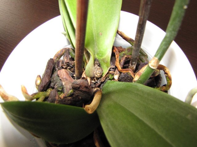 - това е отблизо орхидеята с изгнило листо, тръгна да гние малко след като ми я подариха, дали е от торенето за бърз растеж преди да ги пуснат в магазините?