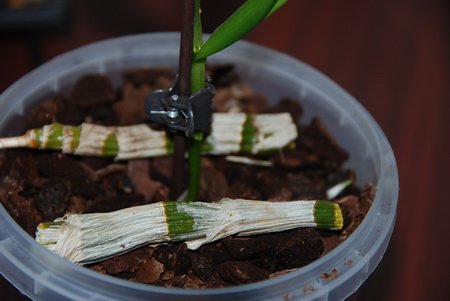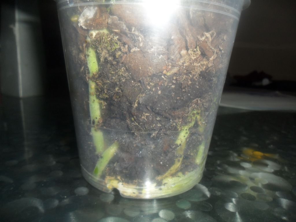 Няма такова нещо като малка саксия за един фал? Един пък съм виждала така редовно торена с зелен кристалон и с корени заели може бо 90% саксията. Тук корените са даже рехави. Освен това няколко загнили хора не са от значение щим има толкова доста свежи и зелени. Пресаждането за мен еповече от излишно, субстрата ми се вижда нормален, с леки подозрения за зелени мухли, но за сега не виждам нищо обезпокоителко. Пъпките на цветоноса за сега са перфектни, дано само не ги хвърли заради смяната на местоположението. Всичко е 6+.