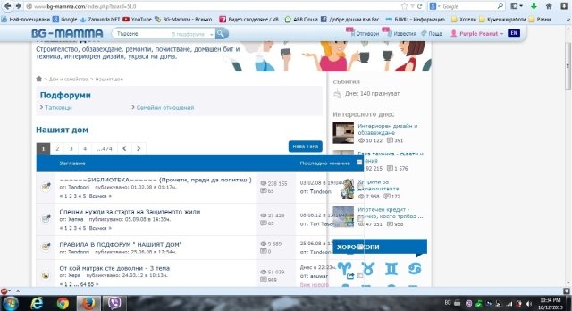 Вижте как се застъпват лентата от дясно с хороскопите и лентата с часа и кой е отговорил на темите. Това е в раздел "Нашият дом". За сега само там ми се появява така.
