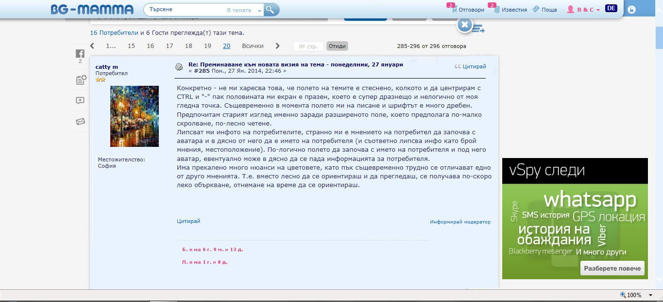 Мамма, имах предвид съотношението "поле за четене- странични бели полета". Насред екрана, независимо колко символа е колоната в темите с новата версия, стои тясна и смачкана от двете страни от бели полета. И се скролва, скролва...