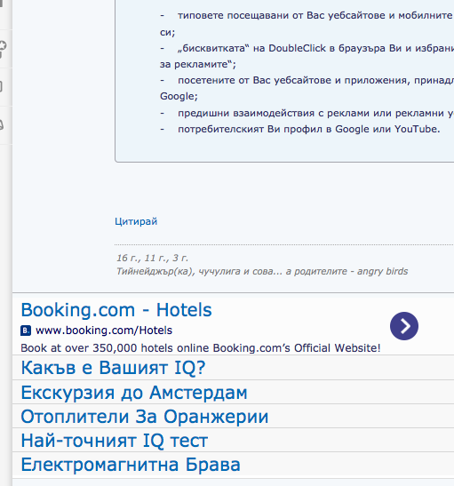 Показваните реклами са от Гугъл и в повечето случаи са различни за всеки, в зависимост от доста неща.