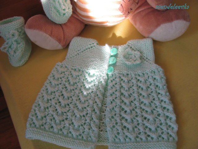 Аз показвам последното елече за неродената си племенница-в много актуалния цвят мента.
