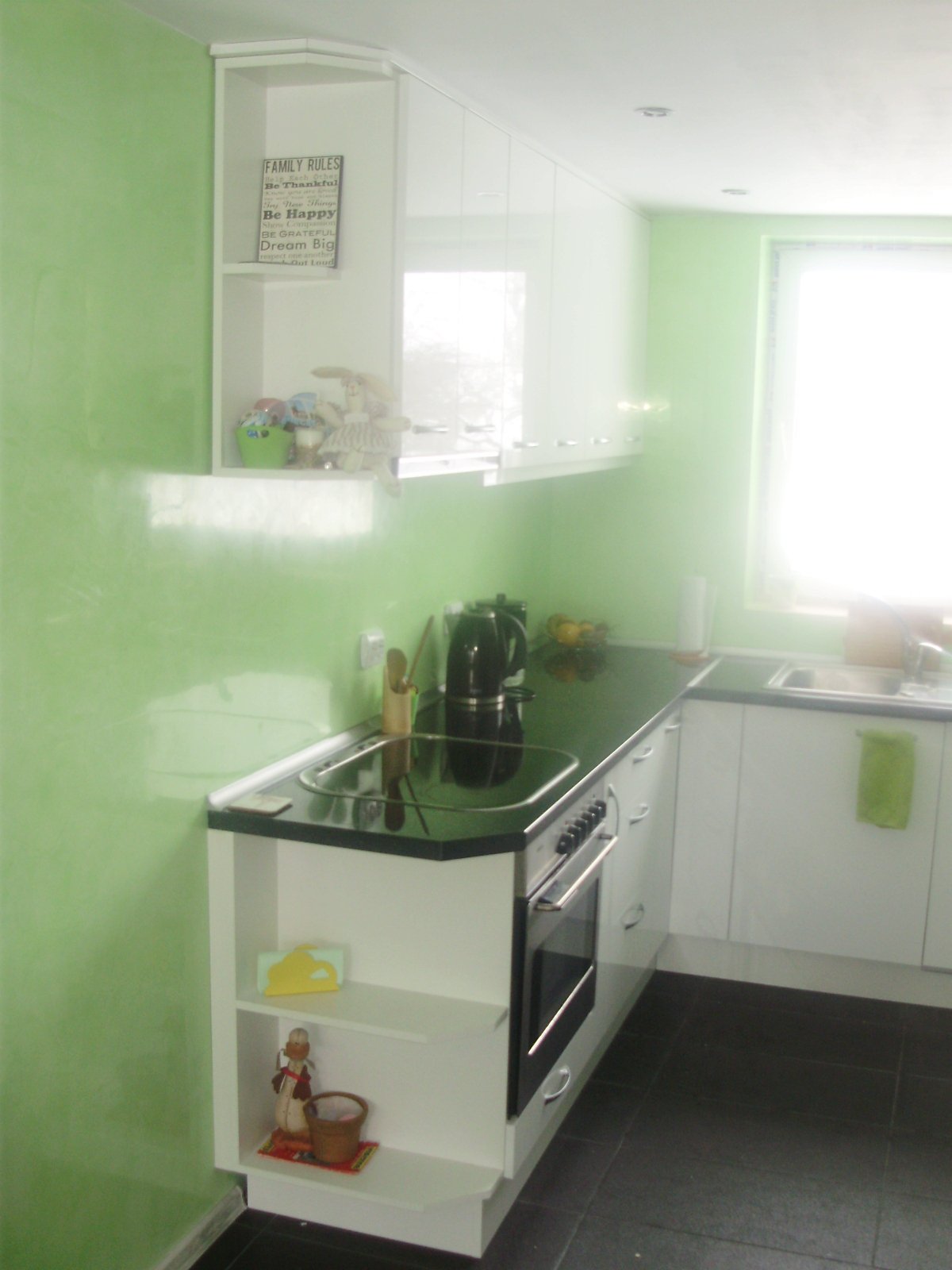 Някои принтове сполучливо допълват кухнята, но на мен бързо биха ми омръзнали, а и ако кухнята е в строените сега хол-кухня-трапезария в едно помещение те много задължават останалото обзавеждане. Затова аз избрах лакобел и не съжалявам.