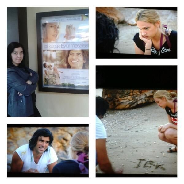 Долу,  вдясно, обаче, има кадър, в който Текин пише на пясъка...