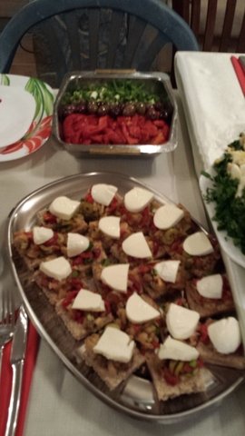 - Едни хапки, на които не намирам рецептата, но представляват запечена фурма пълнена с козе сирене и цял бадем, увита в парче бекон;