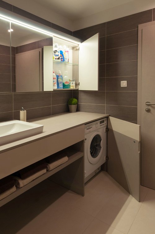 Не знам дали е показвано, но скоро ми попадна прилично и евтино решение за скриване на пералнята в банята: