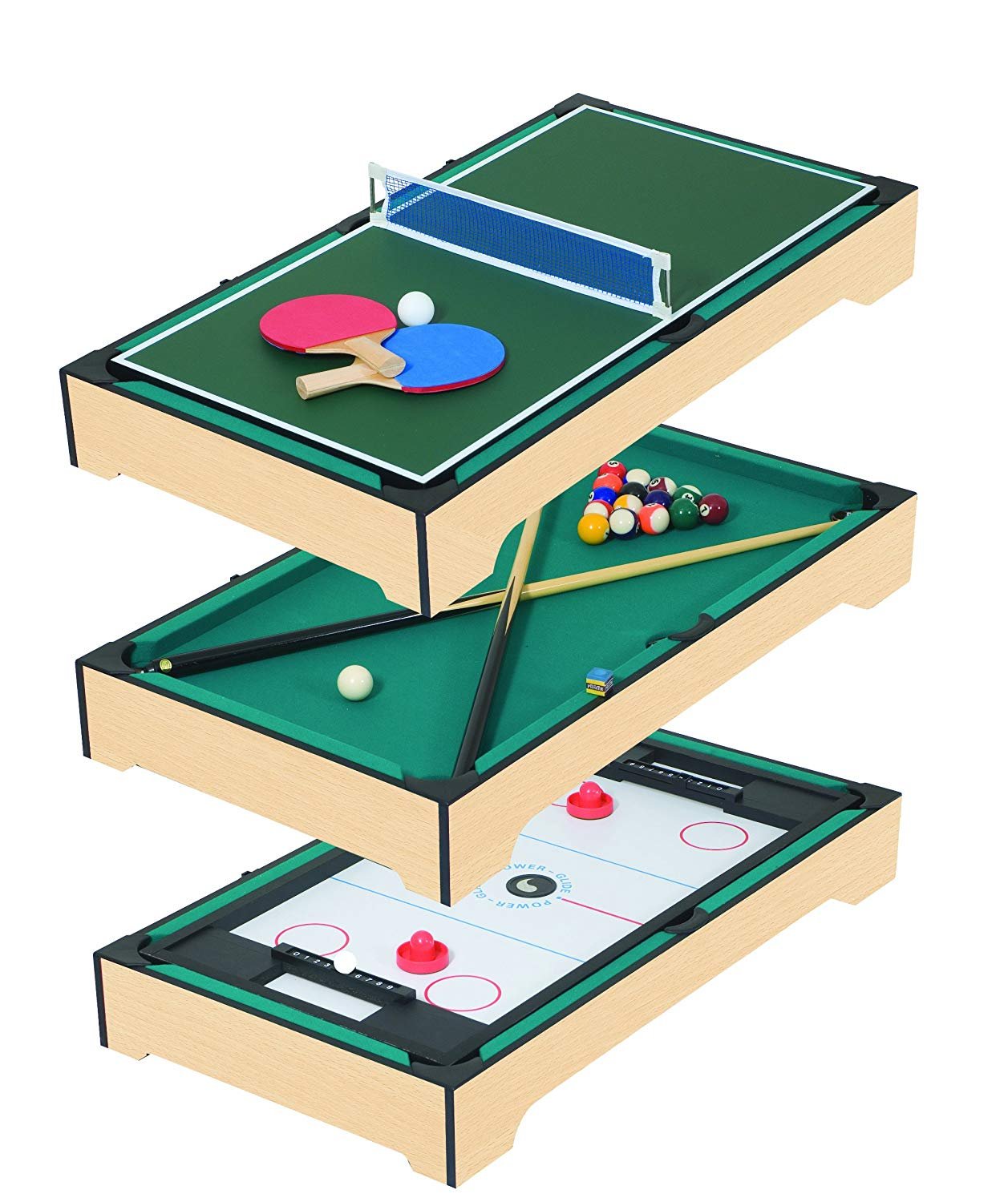 Така като гледам крака няма, слага се вероятно на друга маса отгоре и се играе. От снимката излиза, че е билярдната част с дупките, а за тениса и хокея се слагат вътре отделните табли за игра.