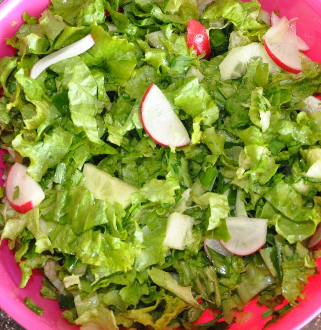 Аз лично ананаса си го спестих, а авторката посочва, че го заменя с кисели краставички и сока им. Поради липса на ябълков оцет сложих винен - хареса ни. Само дето наистина е по-добре да се сервира хладък, иначе ароматът на оцета е по-натрапчив за вкуса ни.