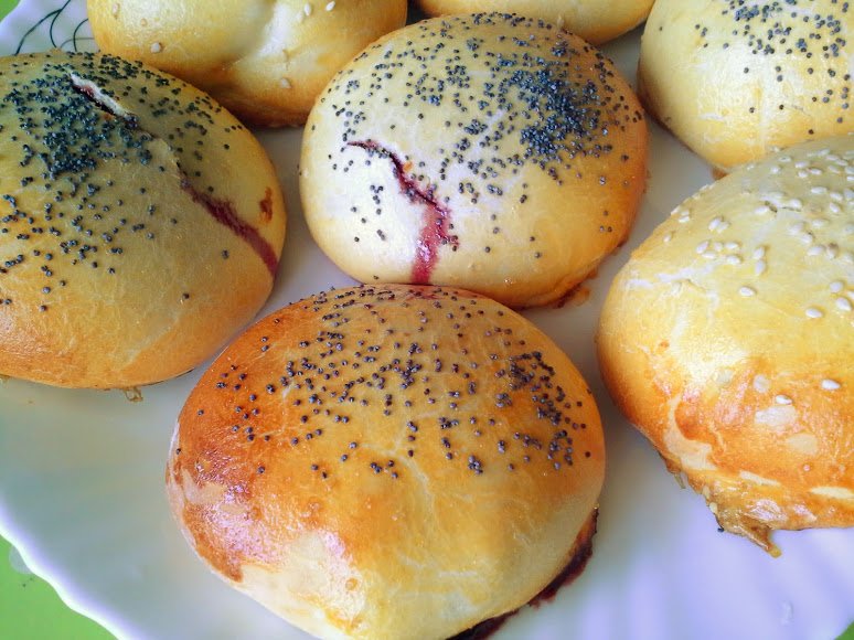 Питчиците ги видях от този клип, но там са пълнени с паста от червен боб адзуки, която не се разтича при нагряване.Аз ги пълних уж с много твърдо сладко от сливи, но пак се разтече.Следващия път ще пробвам с локум.Аз сложих съвсем малко сол, а две супени лъжици захар.