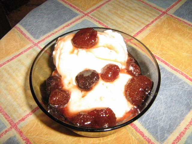 Овче кисело мляко със сладко от ягоди и ориз с гъби.