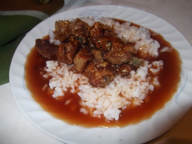 Прилича на винен кебап, но иначе е свинско със сладко-кисел сос  Laughing