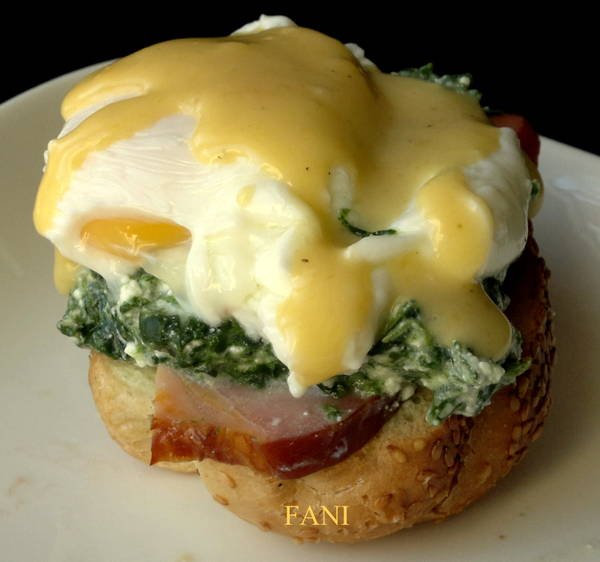 За закуска-яйца по бенедиктински с бекон и спанак със синьо сирене