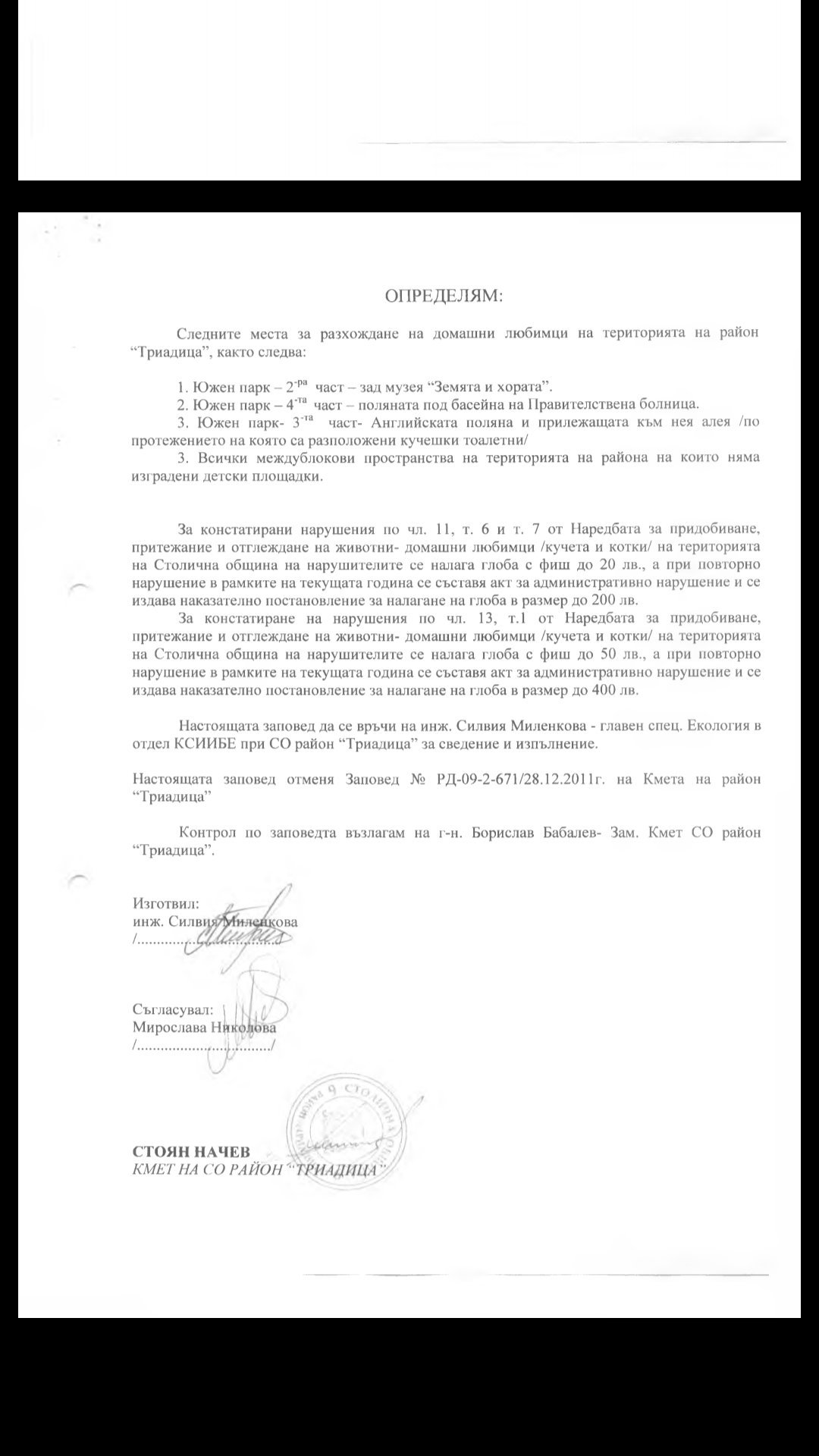 Това е наредбата от община "Триадица" за това къде в южния парк може да разхождат свободно кучета:
