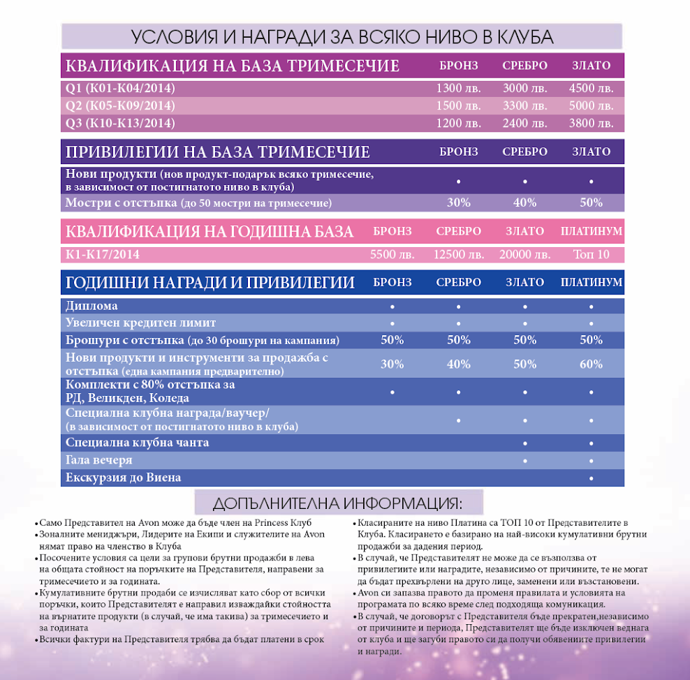 Какви са нивата на класиране в Avon?