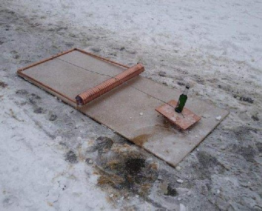 Това е по-скоро капан за голям плъх- пиянде. Има ги много такива и изобщо не се налага да ги ловиш с примки. Даже те се опитват нещо да ловнат от масата без да се нагдигат.