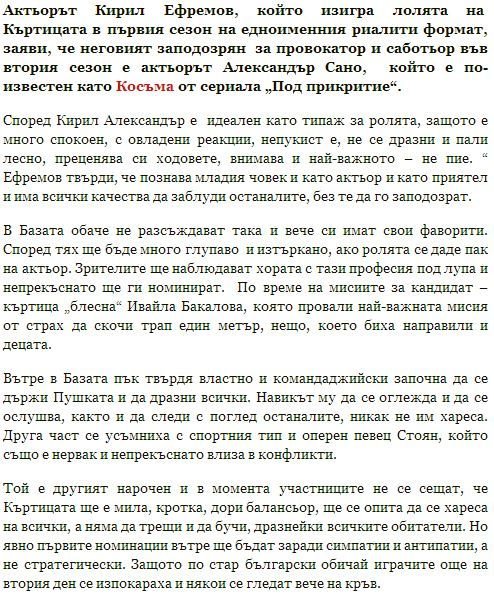 А според Кирил Ефремов къртицата е Александър Сано. За мен лично би било банално.