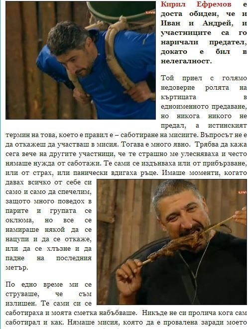 Точно такива спомени имам и аз, че Кирил не е провалял мисии, поне не по такъв начин, че да си проличи. Затова  е най-важно да се изгонят слабите играчи, за да спечелят повече пари за групата. А те в момента правят обратното. Според мен на първо място е Емил К. Той трябва да си ходи.