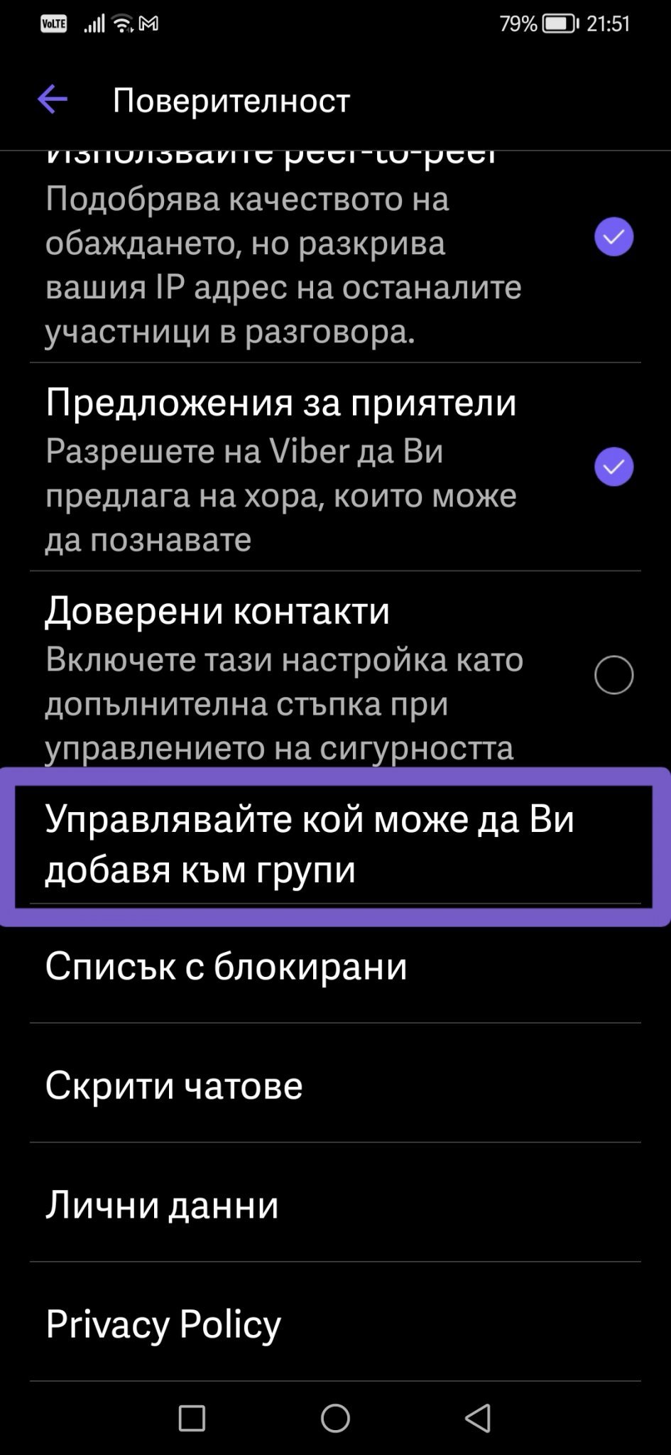 Има ли начин във Вайбър да блокирам профил с който имаме вече чат?