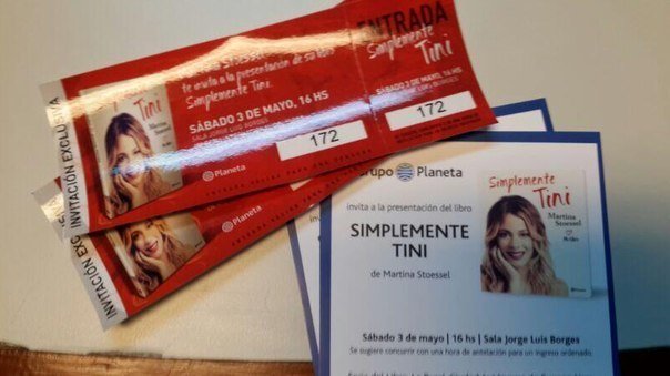 Това са билети за Панаира на книгата, където за първи път ще бъде показана Simplemente Tini.