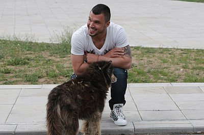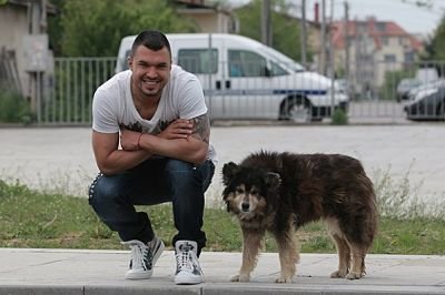 Валери Божинов се радва на бездомно куче. Simple Smile