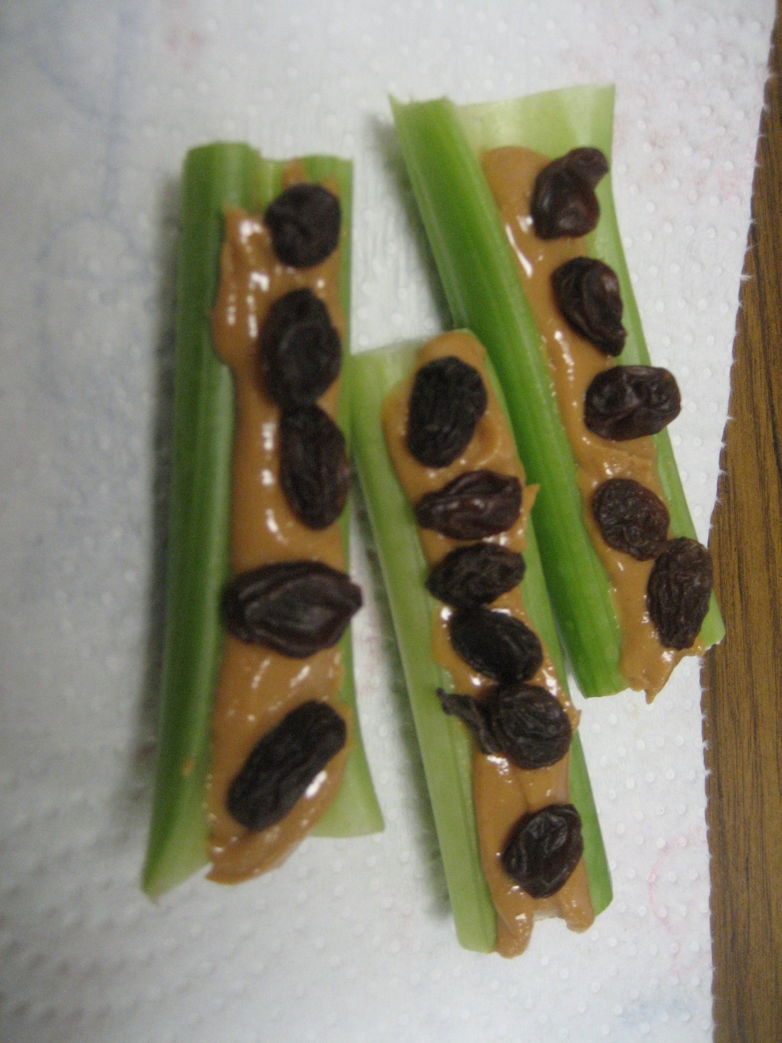 -целина с фастъчено масло и стафиди (мравки на клон му казват тук)