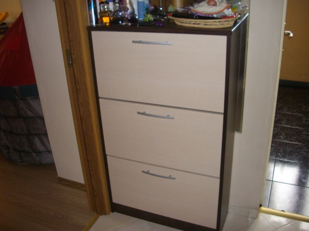 Като начало миналата пролет отделих гардероба и го наместих в антрето. Облепих го с фолио, възможно най-близко до шкафчето за обувки: