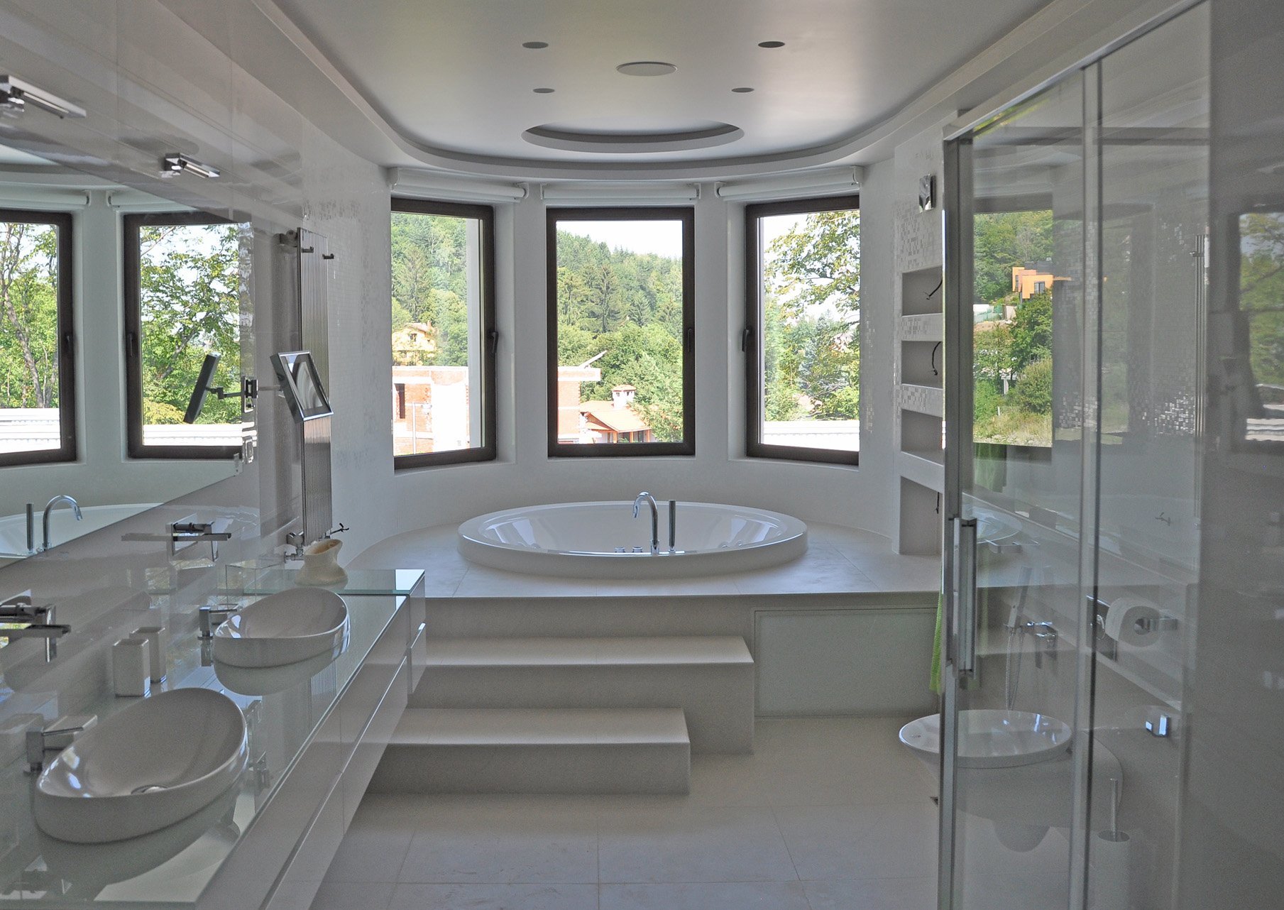 Засега слагайте ваната в дъното, хубаво е да помислите за подиум и леко вграждане, за да може по лесно да се влиза, със стъпало.  Не колкото на снимката, показвам принципа.