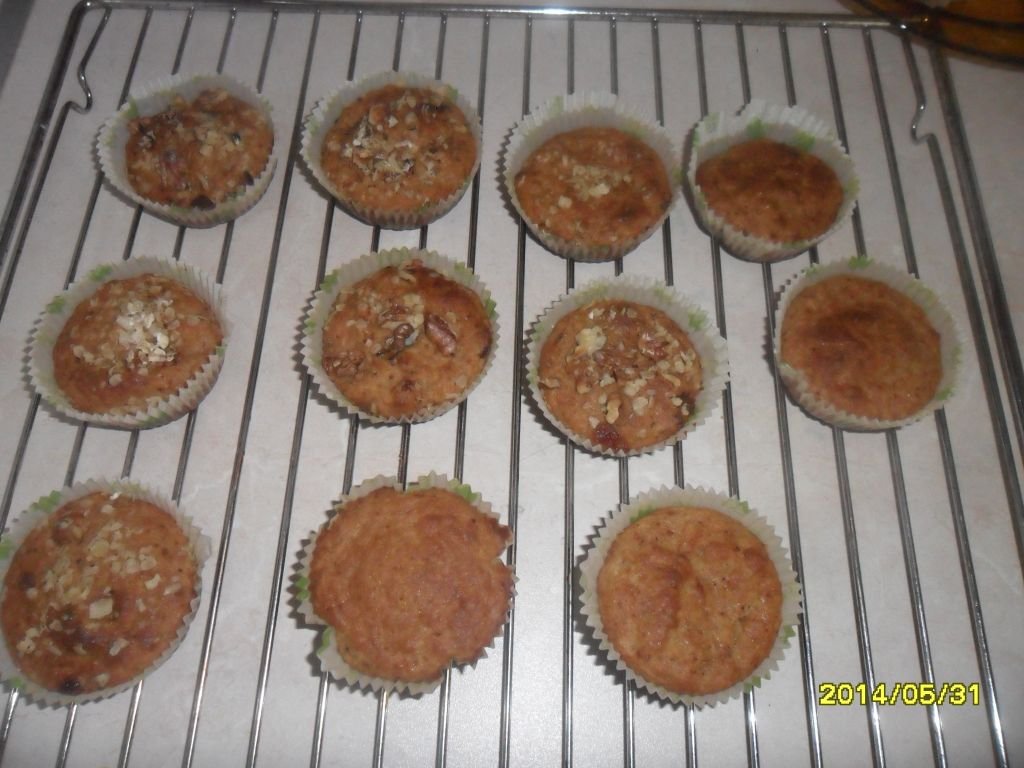 Направих бананови мъфини -  компилация от рецептата дадена от  Бубу и една рецепта от нета, която намерих. Направих я с бяло брашно и елдено, без ленено. Нещо май глетави ми се получиха и доста ги пекох. Сега като поизстинаха май са по -добре. Важното е, че малката ги хапва сладко  в момента. Simple Smile
