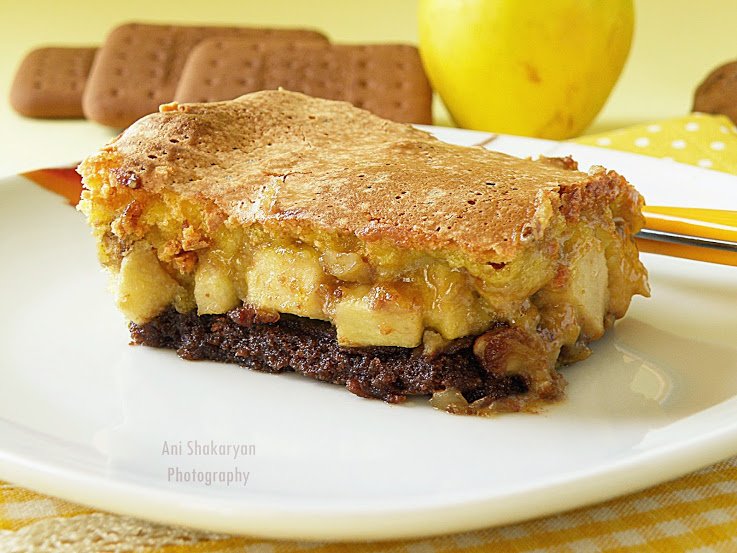 Лесен сладкиш с бисквити и ябълки. В два варианта: бял с ябълки, стафиди и орехи