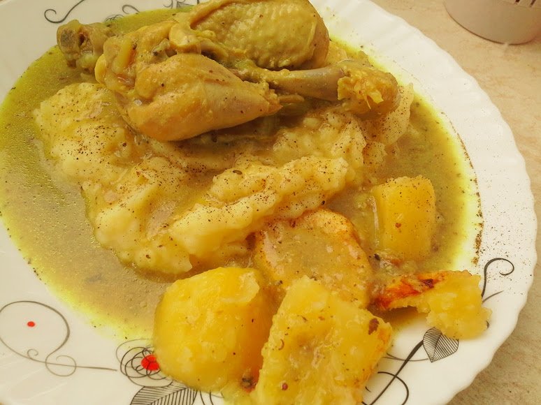 Пиле "по индийски" с картофено пюре.
