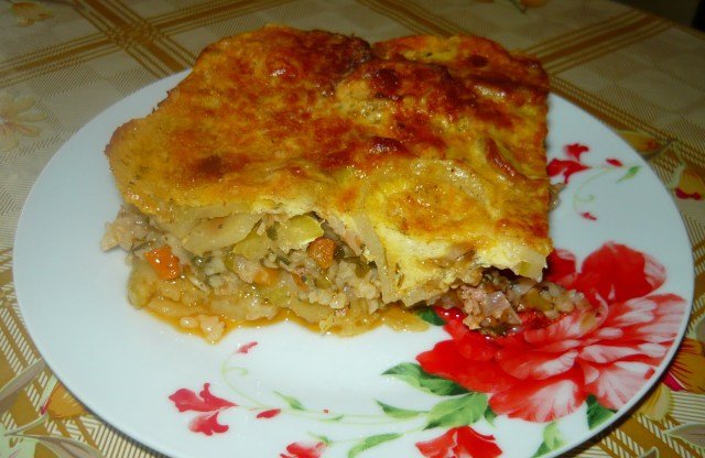 А от онзи ден месака по моя имопровизация- с картофи, тиквички, ориз и кайма