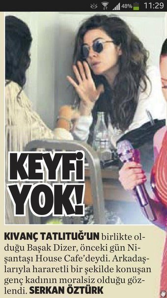 Девушка Кыванча Татлытуга Башак Дизер была замечена с друзьями в "House Cafe", расположенном в Нишанташи. Журналисты отмечают, что Башак была явно не в настроении.