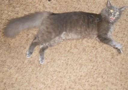 При Маги беше толкова силно-тече на воля, и кой знае откога, че козината на задните крака я нямаше и кожата беше толкова възпалена, че вървеше странно. Като я намерих, тежеше около 500 грама, за около тримесечна котка. ooooh!